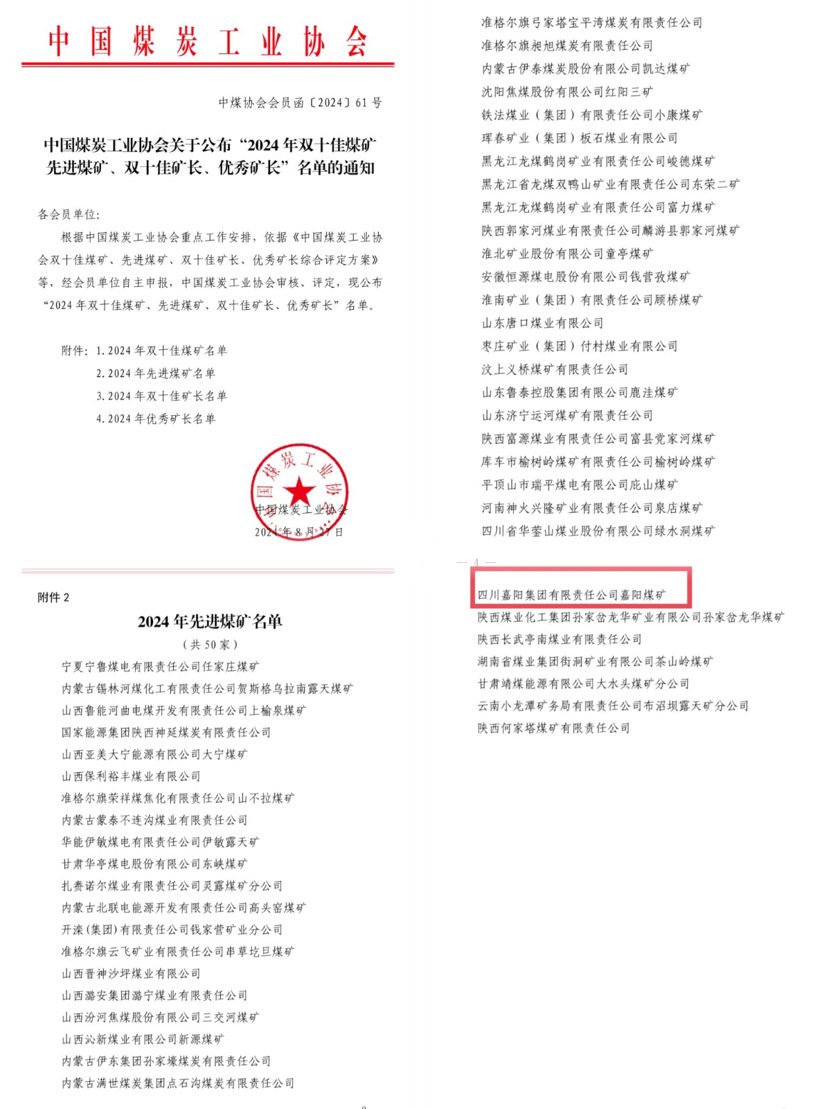 近日,中國煤炭工業(yè)協(xié)會(huì)公布了“2024年先進(jìn)煤礦”評(píng)選結(jié)果,嘉陽煤礦憑借在安全生產(chǎn)、科技創(chuàng)新、經(jīng)營管理等方面的突出表現(xiàn),榮獲2024年度“先進(jìn)煤礦”榮譽(yù)稱號(hào)。