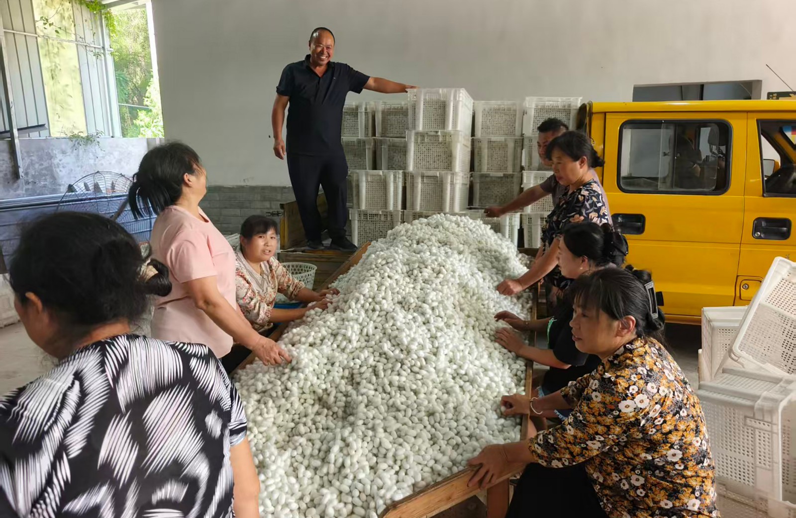 據(jù)統(tǒng)計(jì),2025年大寅鎮(zhèn)15個(gè)村(社區(qū))積極投身養(yǎng)蠶產(chǎn)業(yè),已完成5季養(yǎng)蠶,共飼養(yǎng)小蠶479.5張,收獲蠶繭22672.7公斤,實(shí)現(xiàn)銷售收入119.16萬(wàn)元,利潤(rùn)達(dá)37.41萬(wàn)元,村平均利潤(rùn)率高達(dá)31.4%。其中,高山村全面豐產(chǎn),年銷售收入接近22萬(wàn)元,有效帶動(dòng)了農(nóng)戶增收和村集體經(jīng)濟(jì)發(fā)展,蠶寶寶吐出的“金絲銀線”編織出了更加美好的鄉(xiāng)村新篇章。