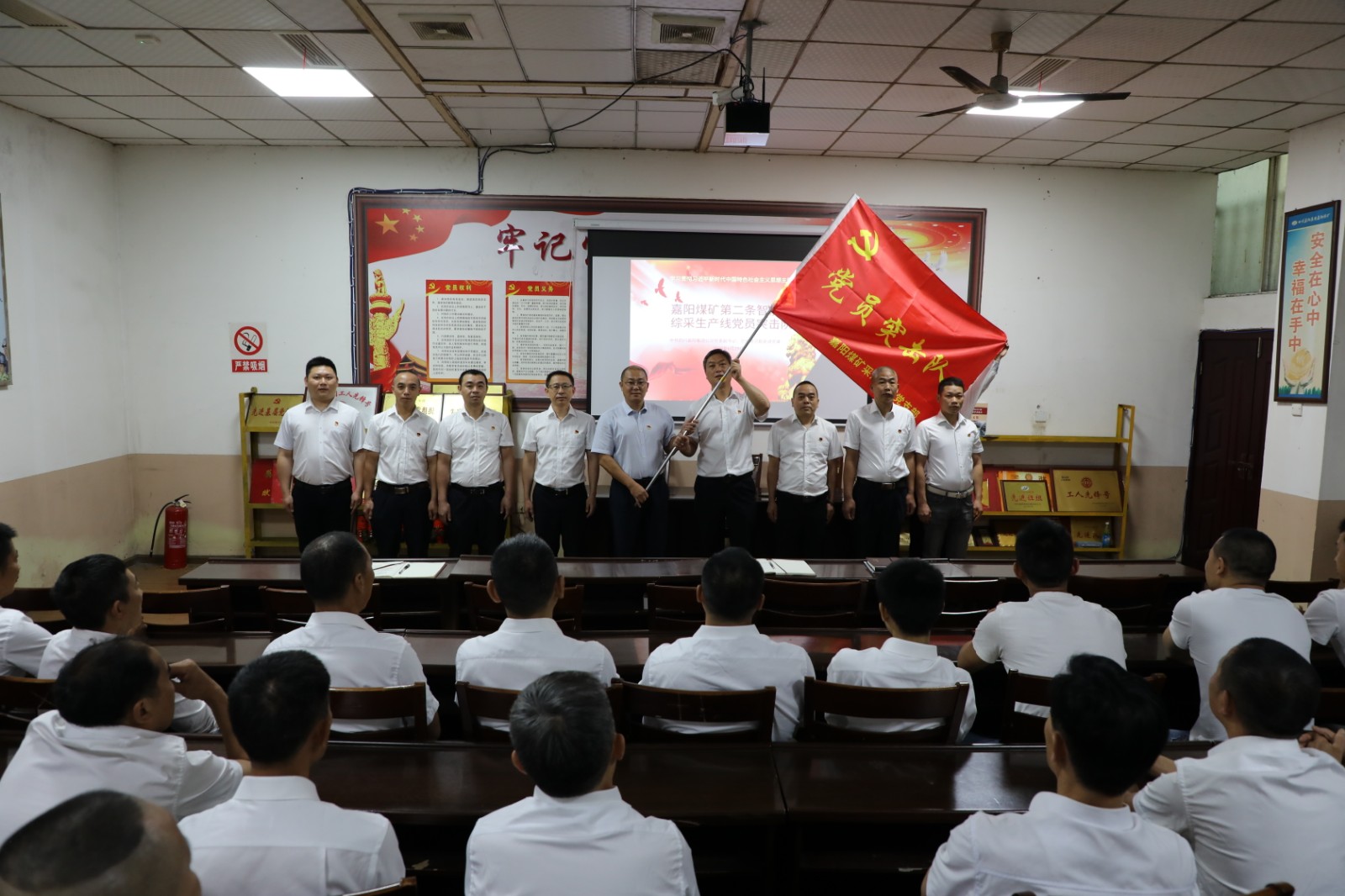 按照主題教育“學(xué)思想、強(qiáng)黨性、重實(shí)踐、建新功”的總要求,堅(jiān)持學(xué)思用貫通、知信行統(tǒng)一,6月29日,集團(tuán)公司黨委副書(shū)記、總經(jīng)理范勤英到嘉陽(yáng)煤礦采煤二隊(duì)進(jìn)行主題黨課宣講,并為黨員突擊隊(duì)授旗。采二隊(duì)黨員、干部、職工共30余人聆聽(tīng)宣講。