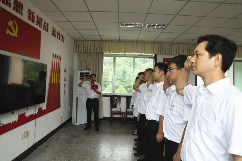 “我志愿加入中國共產(chǎn)黨,擁護(hù)黨的綱領(lǐng),遵守黨的章程,履行黨員義務(wù),執(zhí)行黨的決定,嚴(yán)守黨的紀(jì)律,保守黨的秘密,對黨忠誠,積極工作,為共產(chǎn)主義奮斗終身……在黨群工作部部長姚建軍的領(lǐng)誓下,新黨員們莊嚴(yán)宣誓。