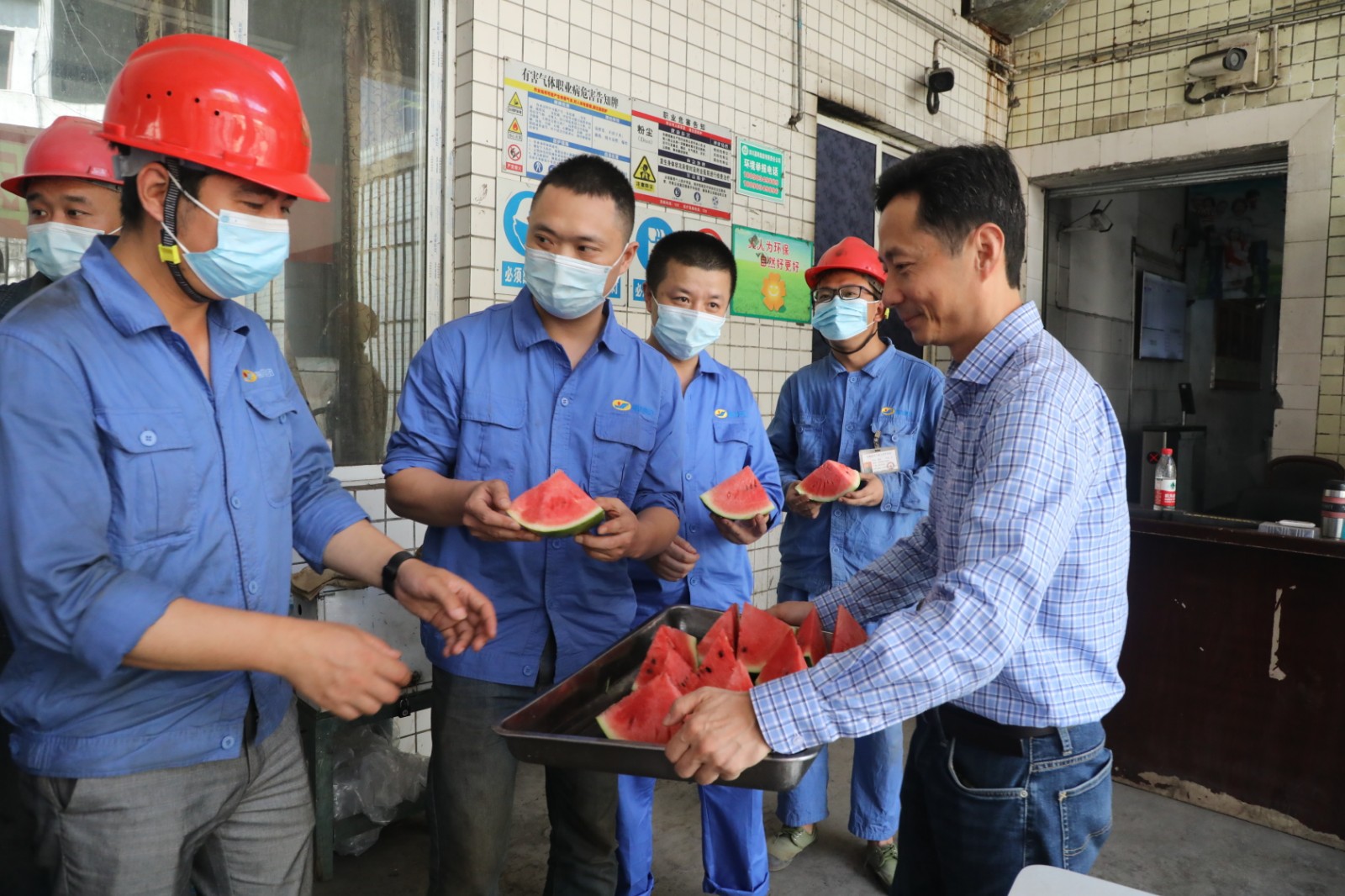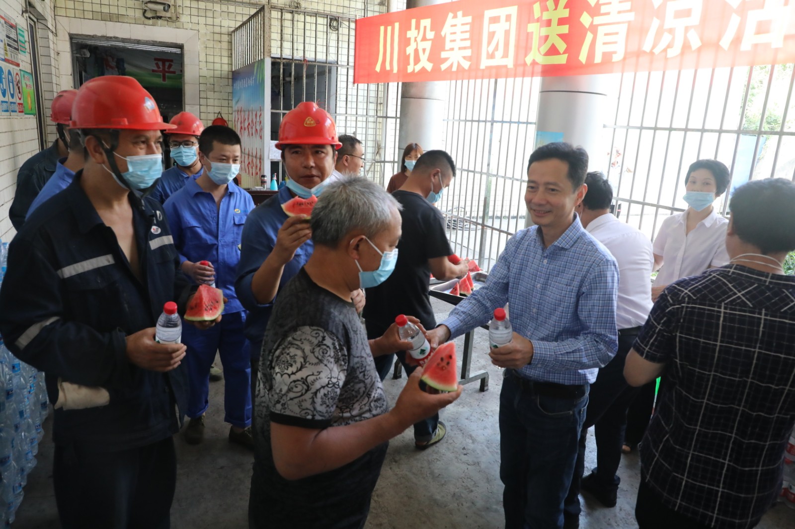 6月7日,川投集團副總經(jīng)理張昊、工會副主席白翠紅一行到嘉陽看望慰問一線高溫崗位職工,為他們送上清涼和關(guān)懷。